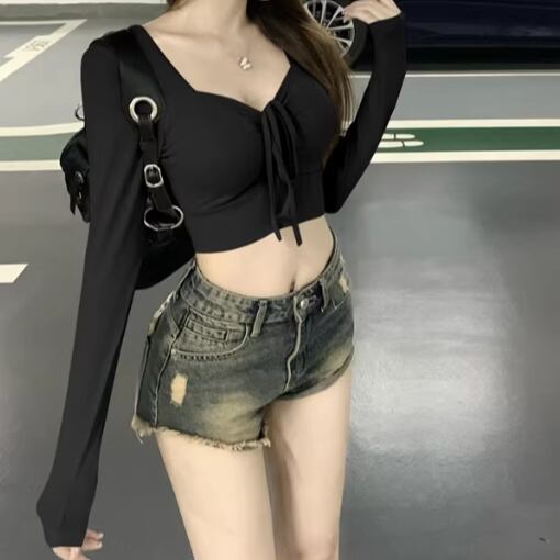 3色/ラインワンショルクロップドトップス ・12610