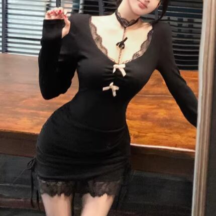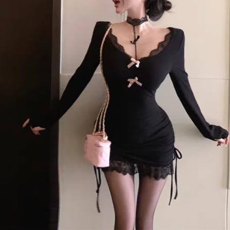 Vスカラップネックバックリボンワンピ ・13074
