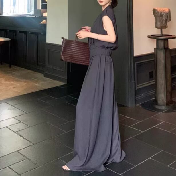【2点セット】2色/ハイネックホルタートップス+プリーツスカート ・7456