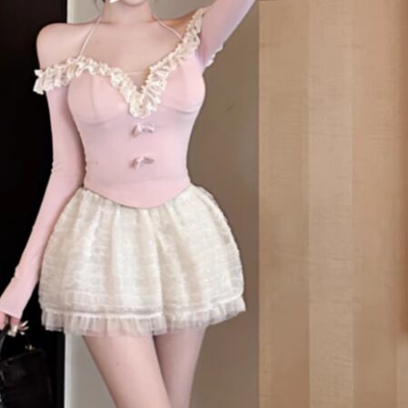 3色/ラインワンショルクロップドトップス ・12610