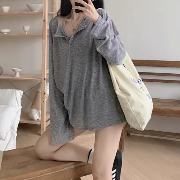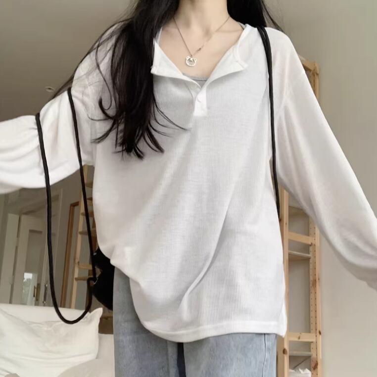 3色/カットアウトボタンハイネックトップス ・13211