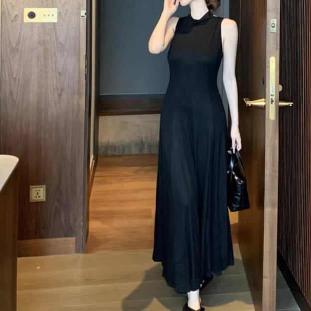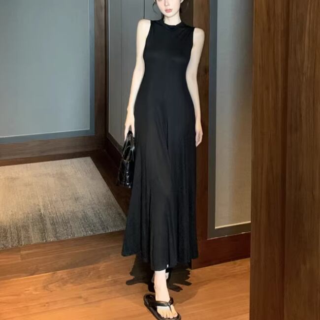 【2点セット】2色/ハイネックホルタートップス+プリーツスカート ・7456