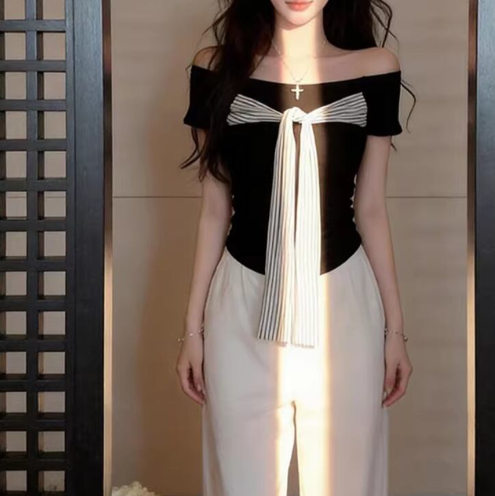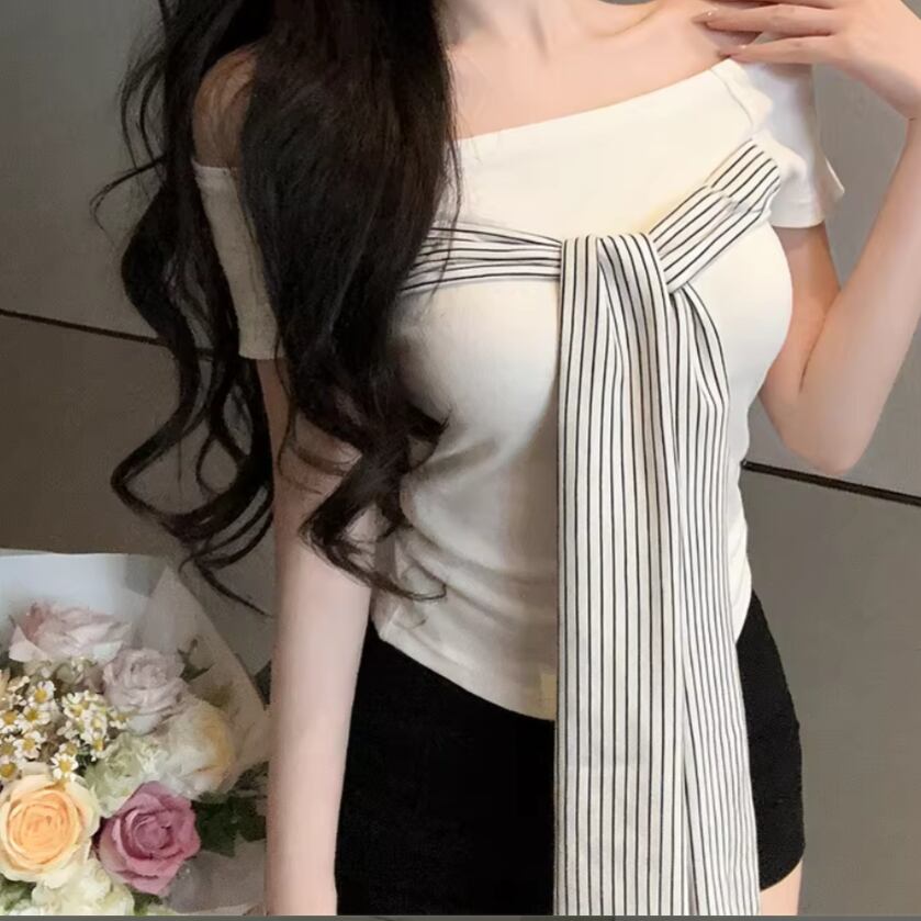 3色/ラインワンショルクロップドトップス ・12610