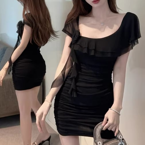 2色/オープンカットアウトコンビワンピ ・12651