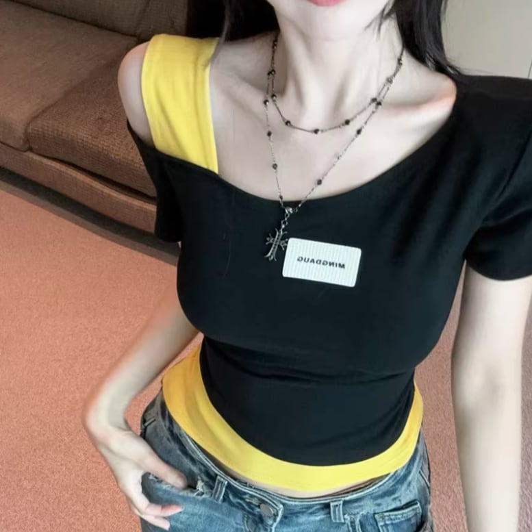3色/ラインワンショルクロップドトップス ・12610