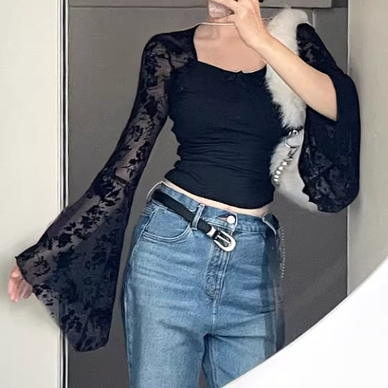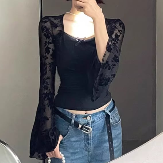 3色/ラインワンショルクロップドトップス ・12610