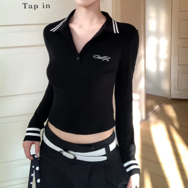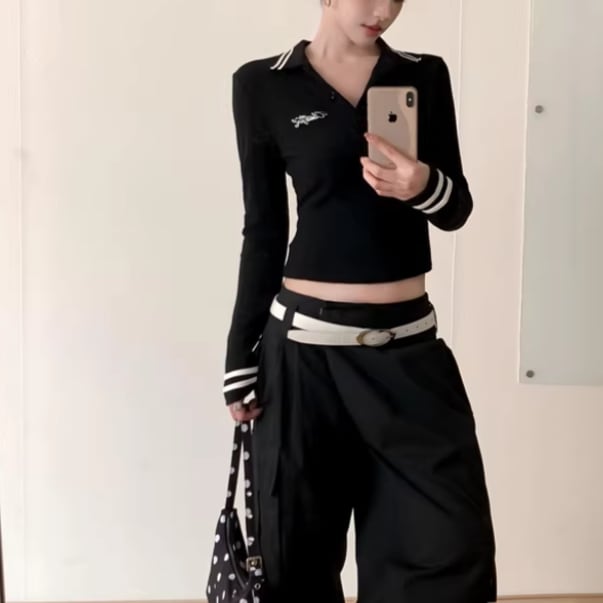 3色/ラインワンショルクロップドトップス ・12610