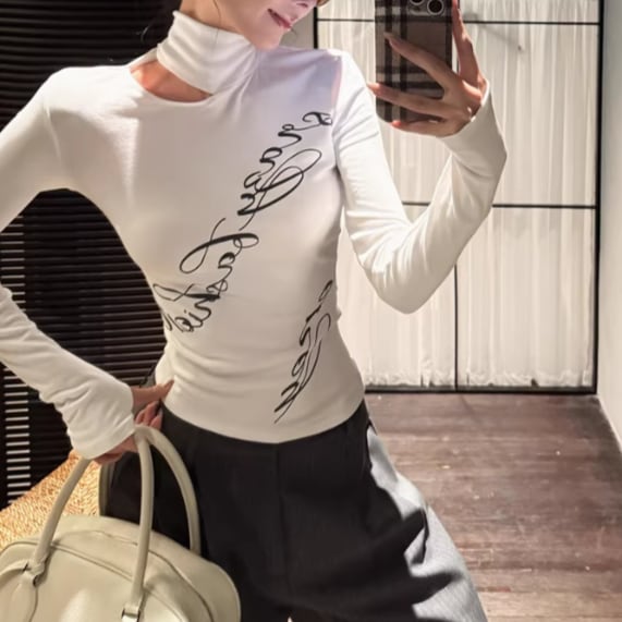3色/カットアウトショルダータートルネックトップス ・13089