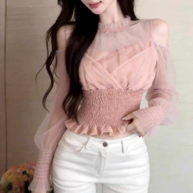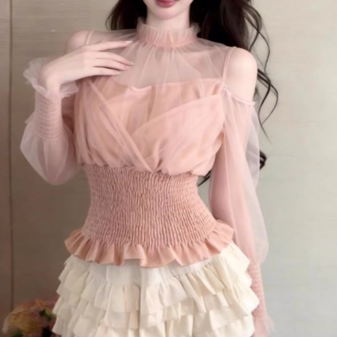 3色/カットアウトショルダータートルネックトップス ・13089