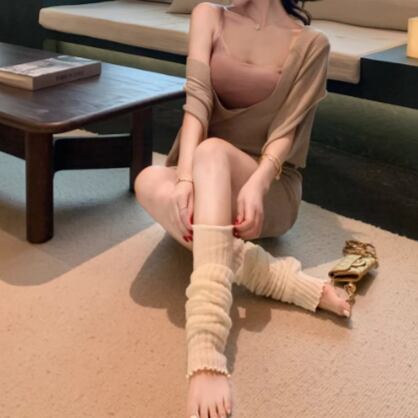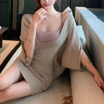 【3点セット】ファーネックカーデ+カットアウトキャミ+ロゴスカート ・13218