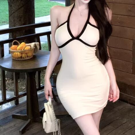 2色/オープンカットアウトコンビワンピ ・12651