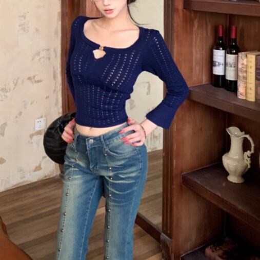 3色/ジップアップカットアウトニット ・14165