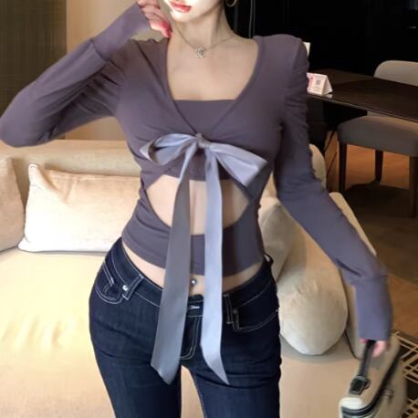 3色/ラインワンショルクロップドトップス ・12610