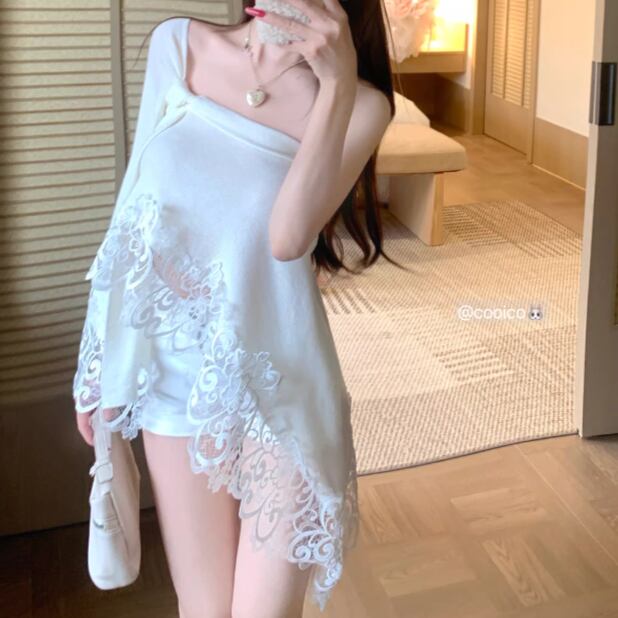 3色/ラインワンショルクロップドトップス ・12610
