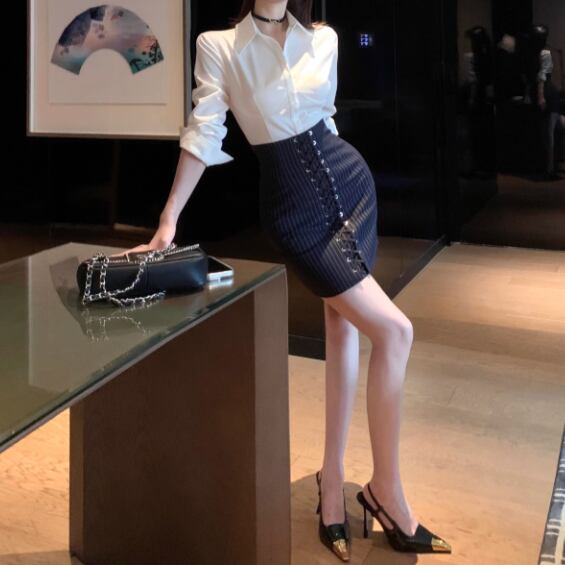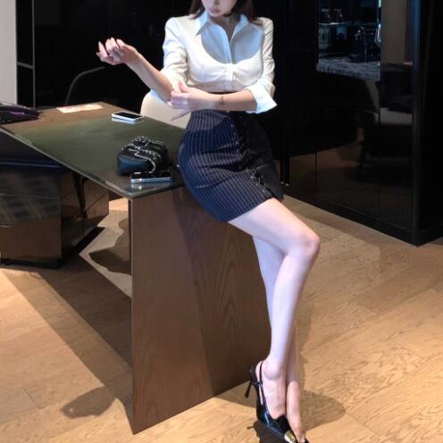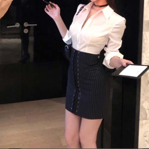 Wスリットデニムスカート ・14423