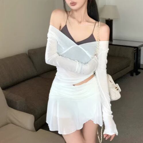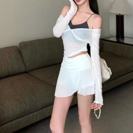▽Instagram「新作情報配信中」 フォローお願いいたします。 https://www.instagram.com/rote_roze.official/ ▼カラー ホワイト(画像2枚目) パープル(画像3枚目) ブラック(画像4枚目) ブルー(画像5枚目) ▼サイズ [ Sサイズ ] キャミ:着丈25cm バスト64cm トップス:着丈47cm バスト72cm 袖丈63cm スカート:着丈32cm ウエスト54cm [ Mサイズ ] キャミ:着丈26cm バスト68cm トップス:着丈48cm バスト76cm 袖丈64cm スカート:着丈33cm ウエスト58cm ※1-3cm程度の誤差がある場合がございます。予めご了承ください。 ▼シーズン 春,夏 ▼同じカテゴリの商品はこちら https://www.roteroze.com/categories/4991976 ▽お支払い方法 ・クレジットカード決済 ・キャリア決済 (docomo/au/Softbank/Y!mobile) ・後払い決済 (商品お届け後コンビニ払いなど) ▽注意点 ※こちらの商品は決済から10日-3週間前後でのお届けとなります。 ※配送日時指定等に関しては、ご指定できないことご了承くださいませ。 ※できる限り早くお届けできるように手配させて頂きます。 ※検品はしておりますが、もし届いた商品に不備がありましたら、誠実に対応させていただきます。 商品ID:RR014412