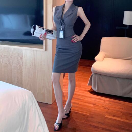 【2点セット】2色/ハイネックホルタートップス+プリーツスカート ・7456