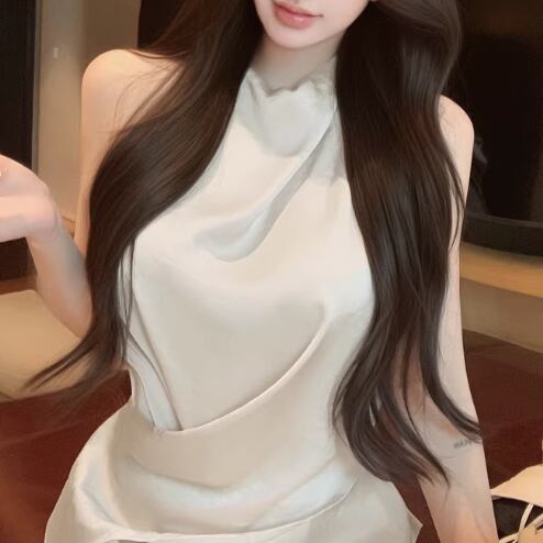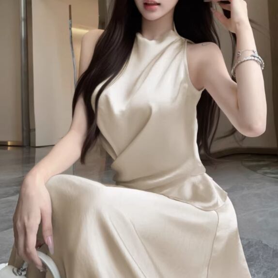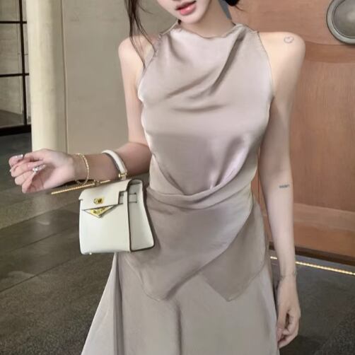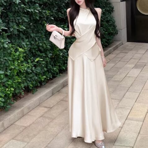 【2点セット】2色/ハイネックホルタートップス+プリーツスカート ・7456