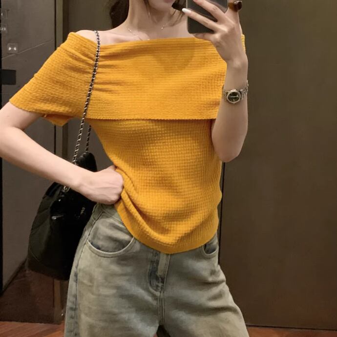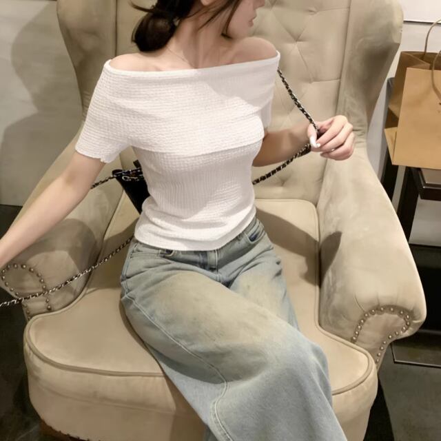 アシメドットデザインショルダートップス ・14508