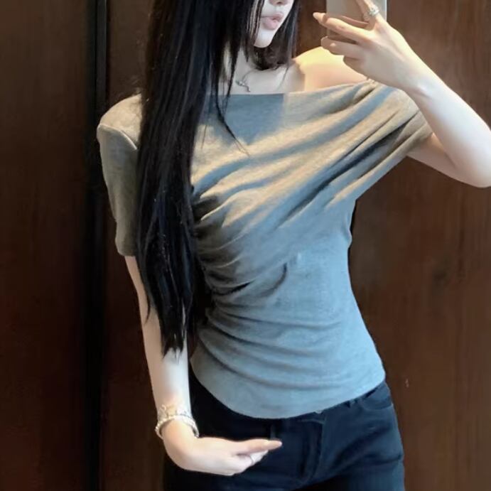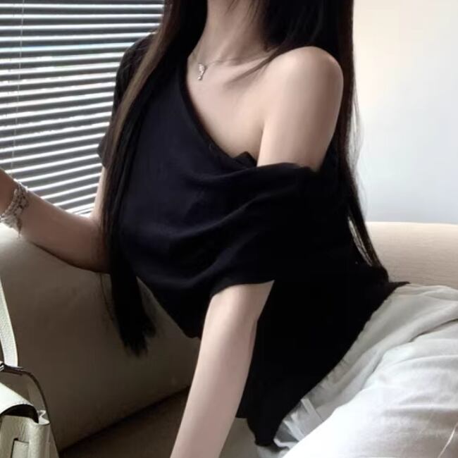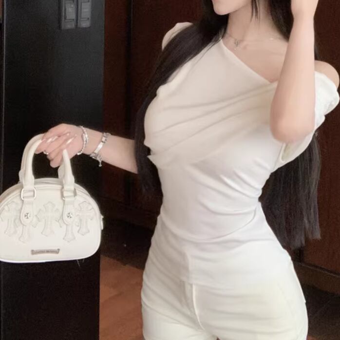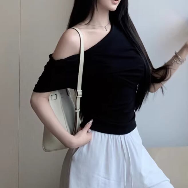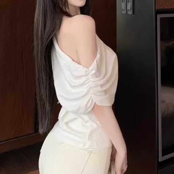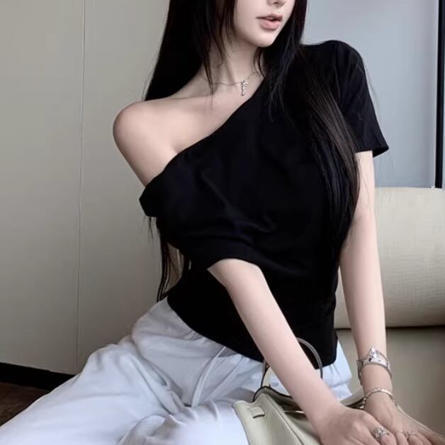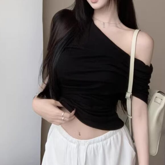 アシメドットデザインショルダートップス ・14508