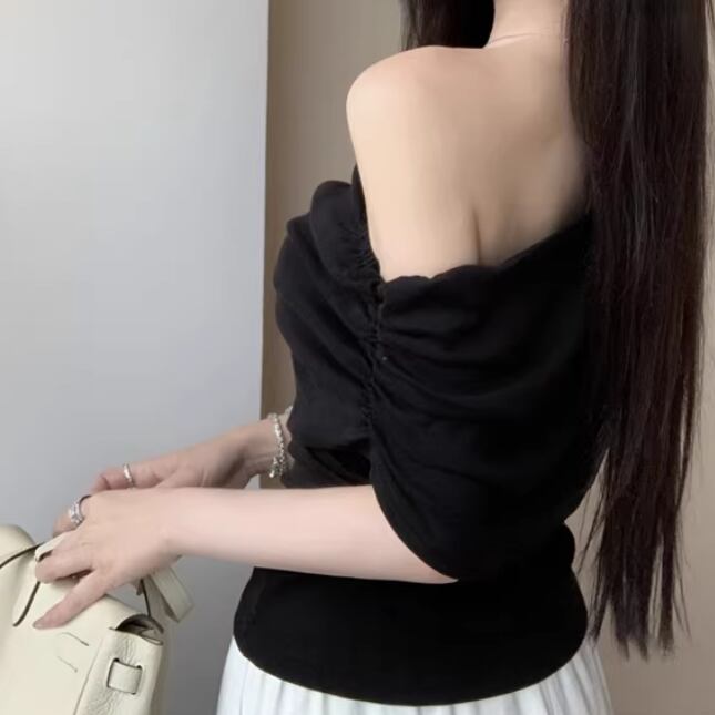 5色/ラップオフショルテクスチャートップス ・14504