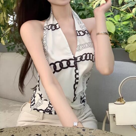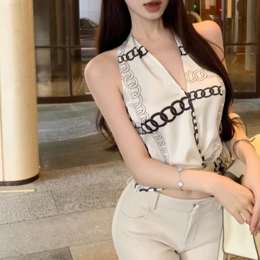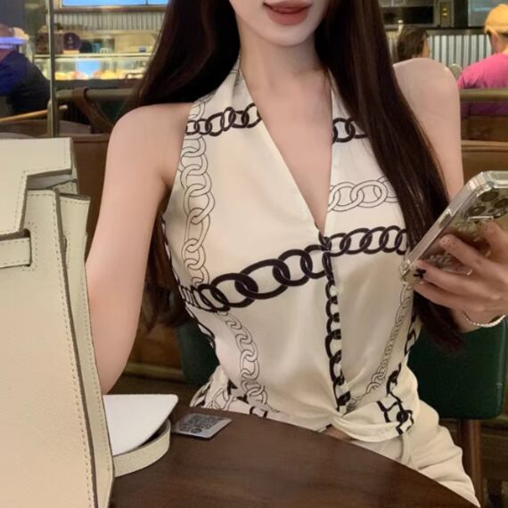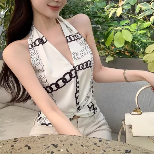 ホルターネックノットストライプブラウス ・14497