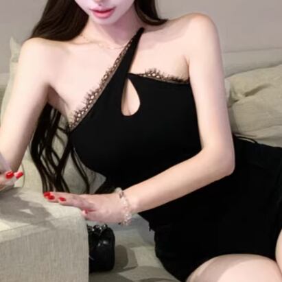 アシメドットデザインショルダートップス ・14508