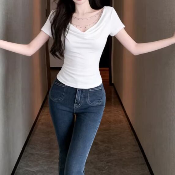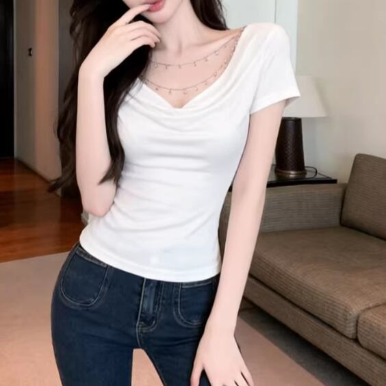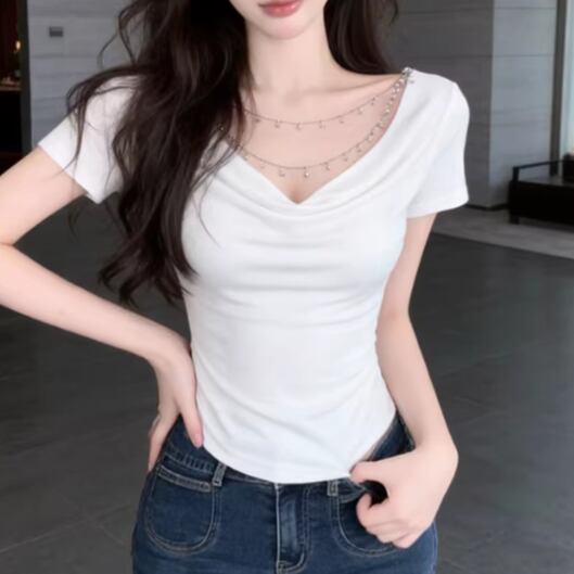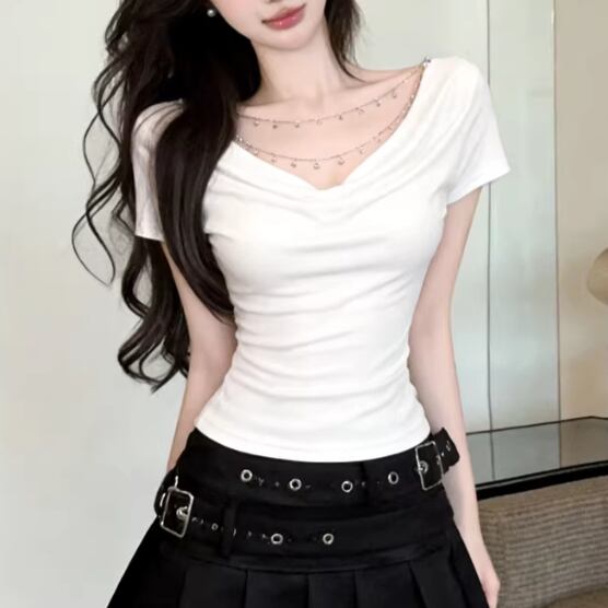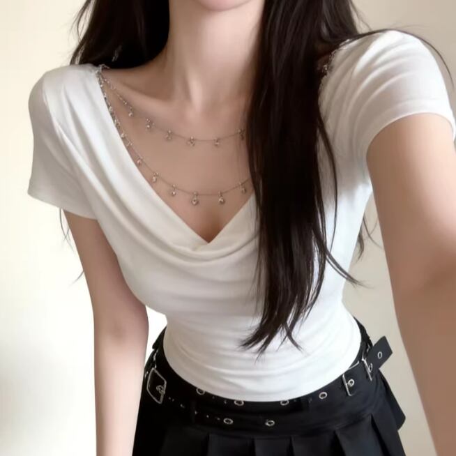 アシメドットデザインショルダートップス ・14508