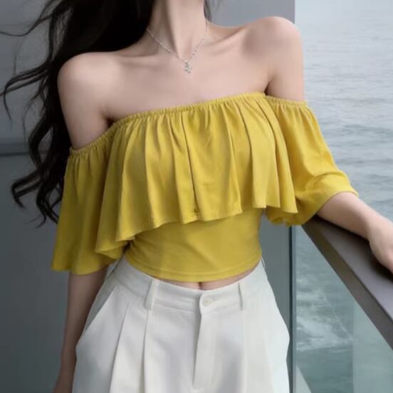 5色/ラップオフショルテクスチャートップス ・14504