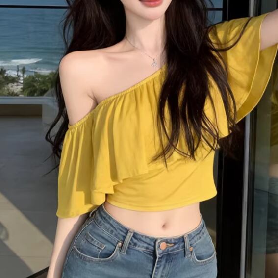 アシメドットデザインショルダートップス ・14508