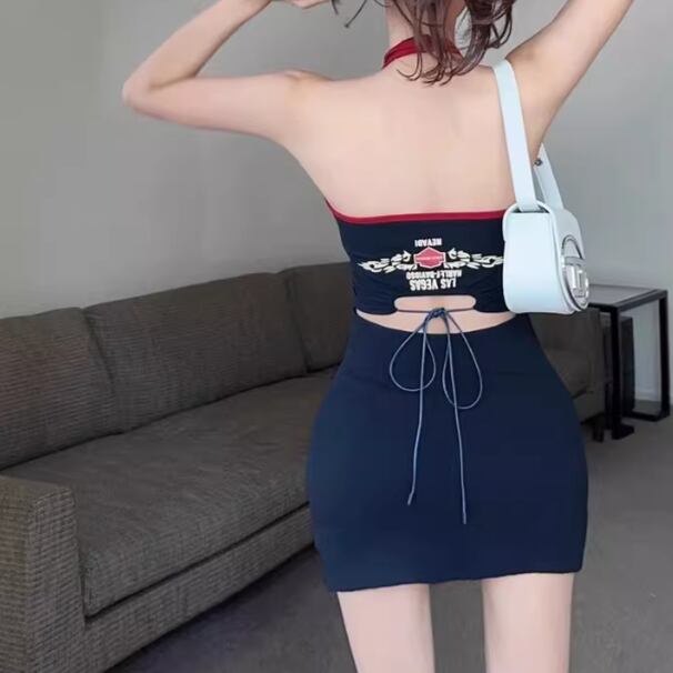 2色/オープンカットアウトコンビワンピ ・12651