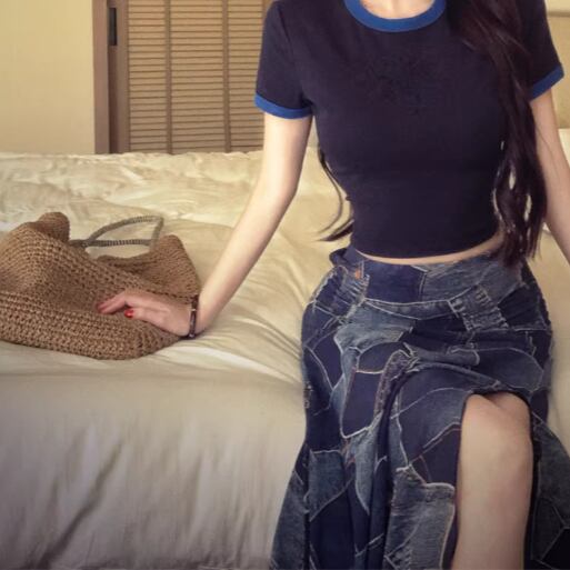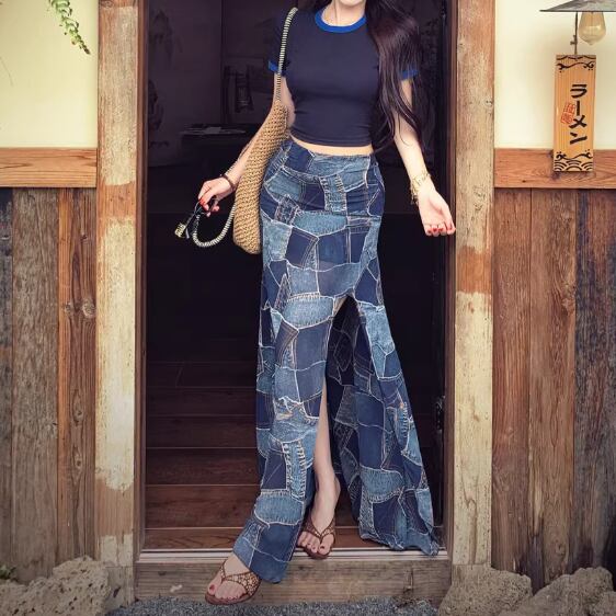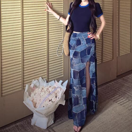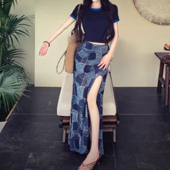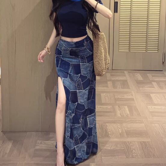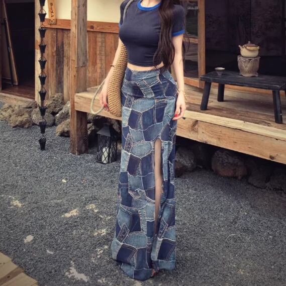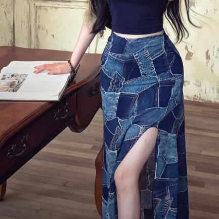 Wスリットデニムスカート ・14423
