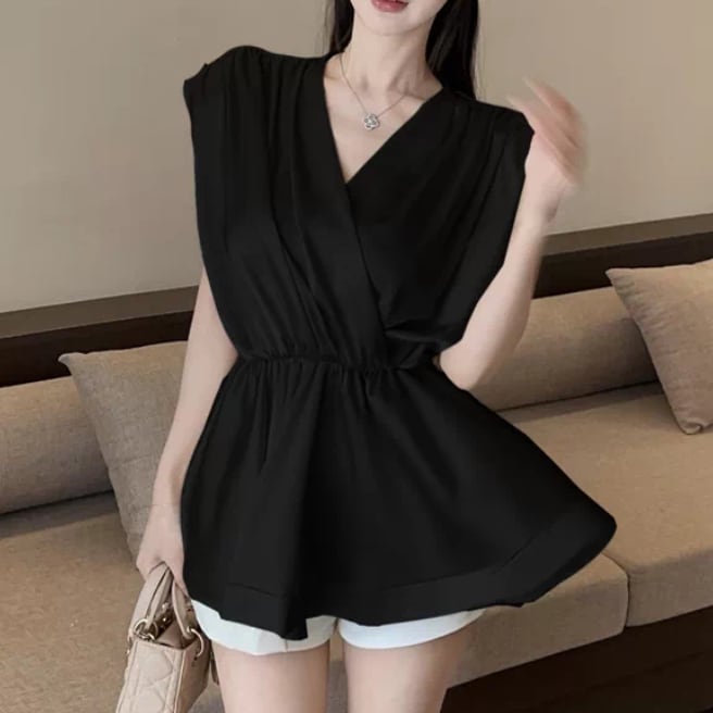 2色/フリルストラップウエストリボンブラウス ・14571