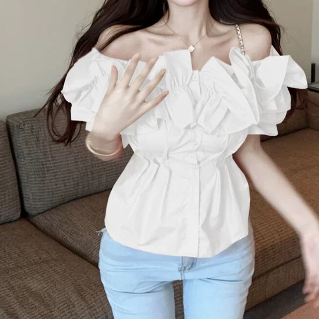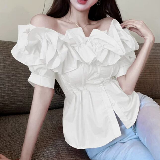 スカラップVネックレースブラウス ・14605