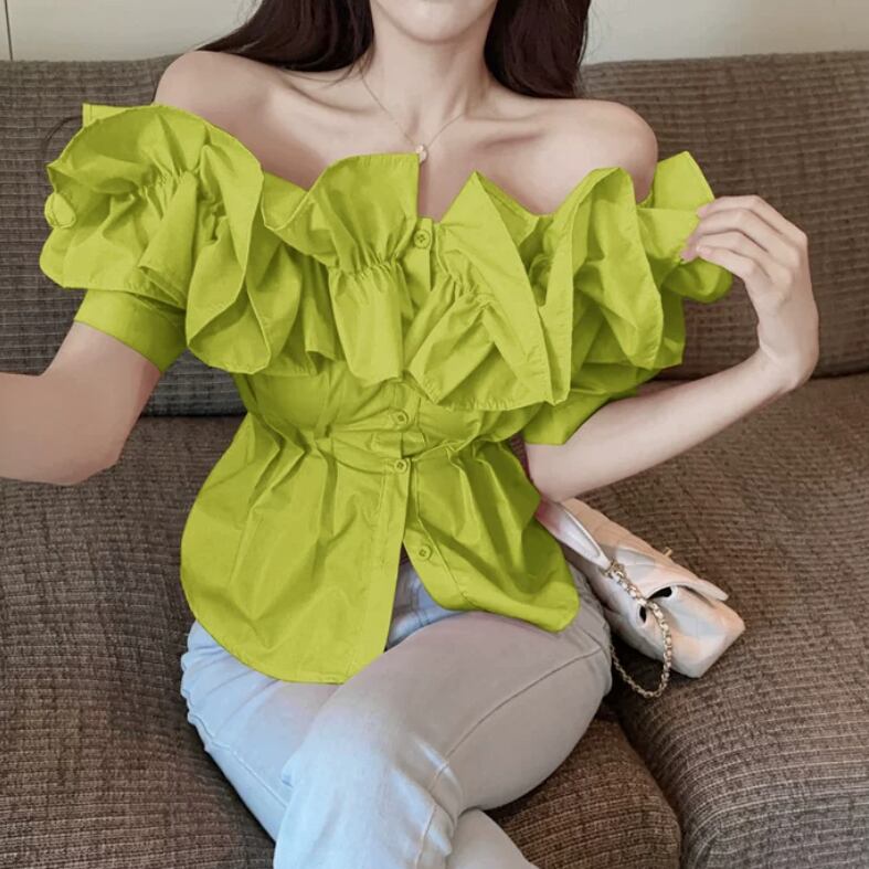 4色/ビジューボタンマオカラーブラウス ・14587