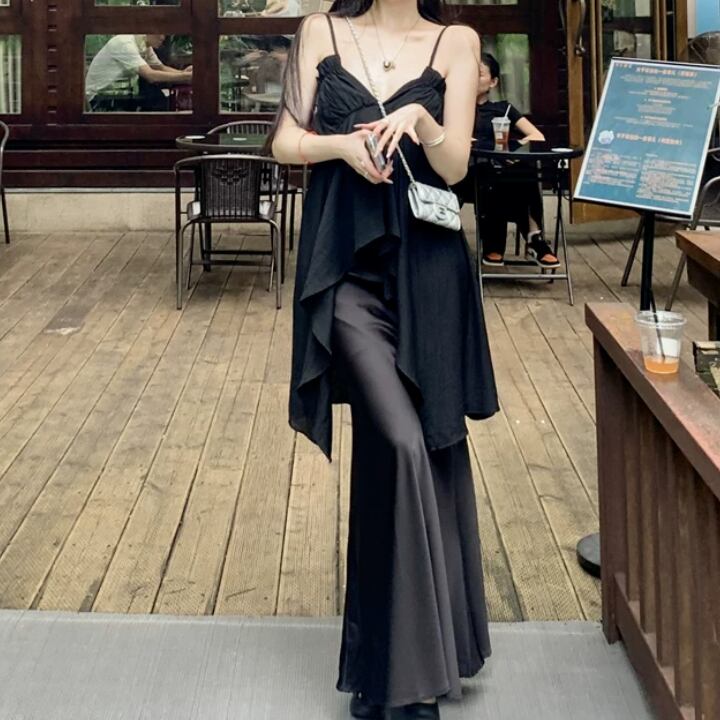 【2点セット】2色/フロントギャザートップス+ワイドパンツ ・14611