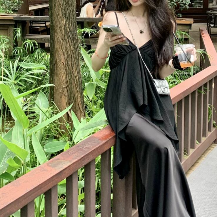 【2点セット】2色/ハイネックホルタートップス+プリーツスカート ・7456