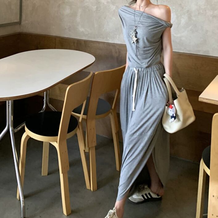 【2点セット】2色/フロントギャザートップス+ワイドパンツ ・14611
