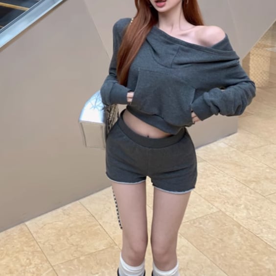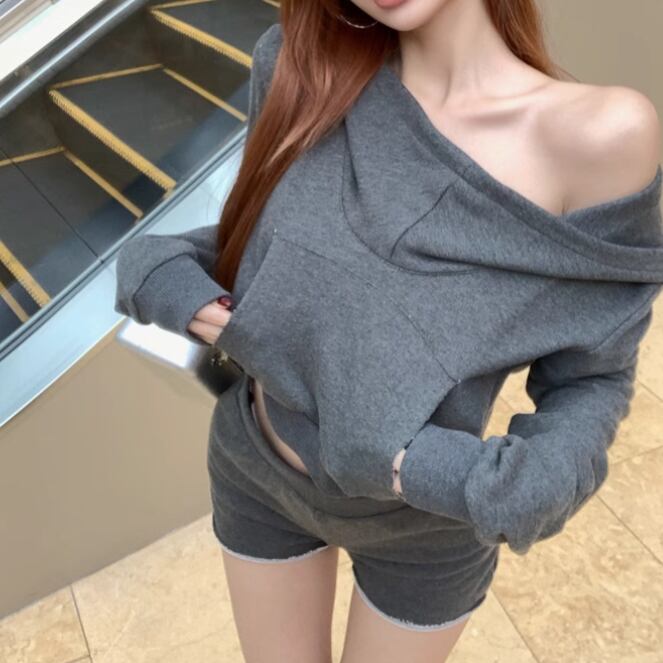 【2点セット】3色/フーディーカシュクールトップス+マーメイドスカート ・12506