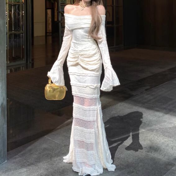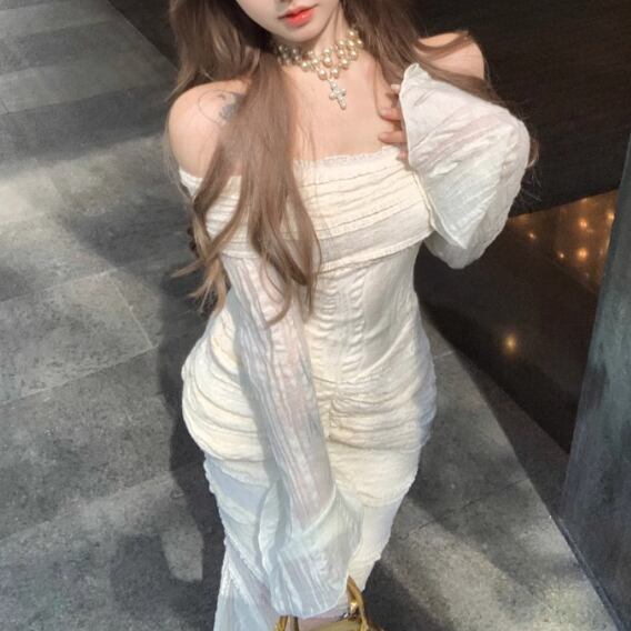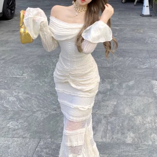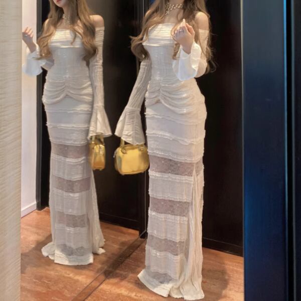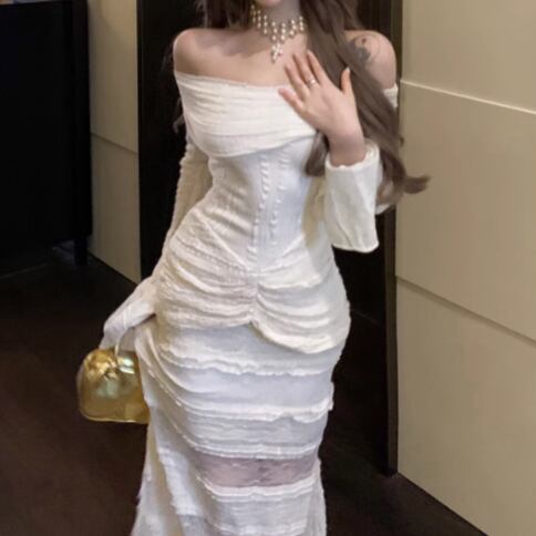 レースデザインワンショルワンピ ・12621