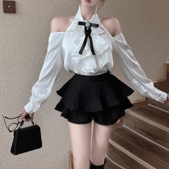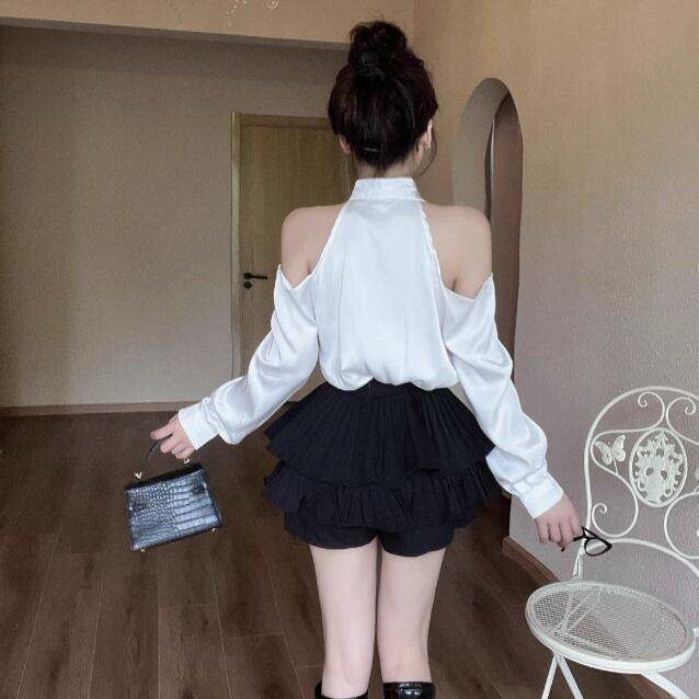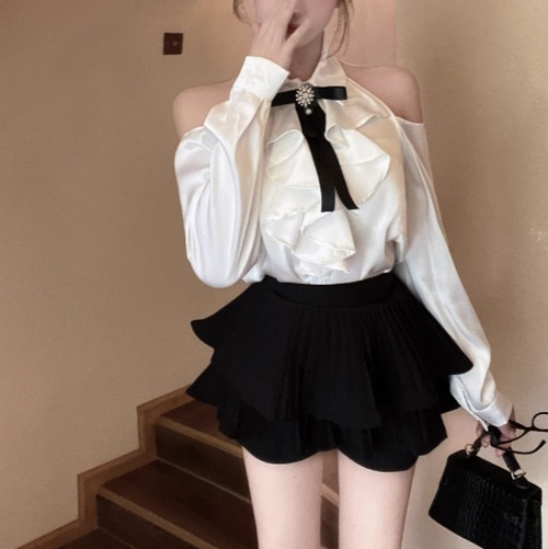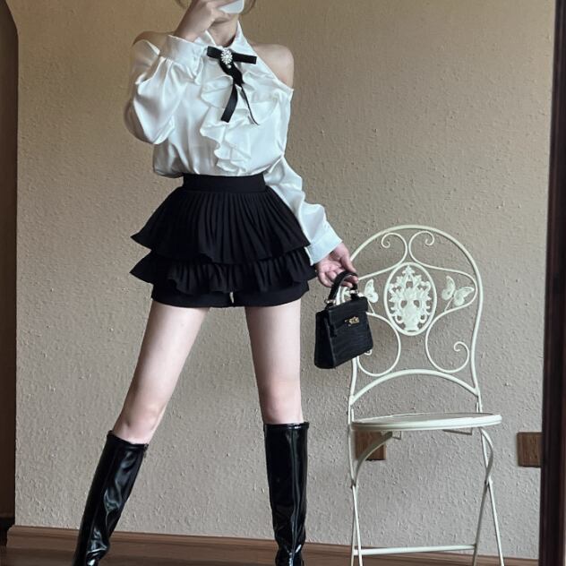 ウエストWボタンアシメショルダーブラウス ・13137