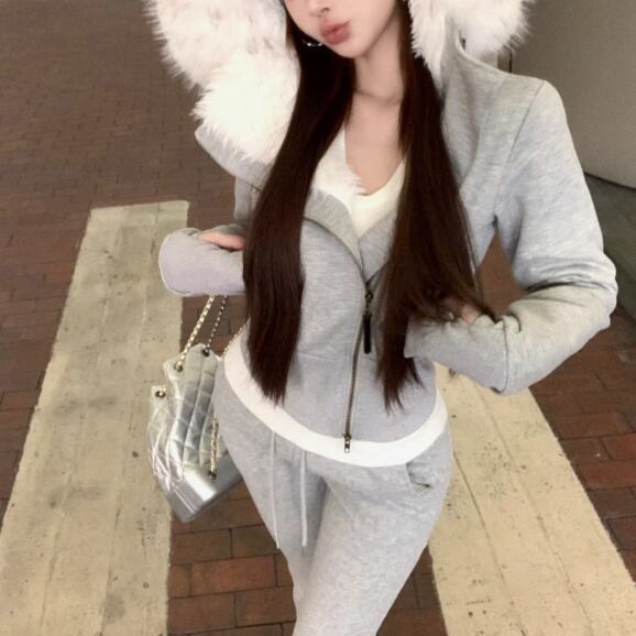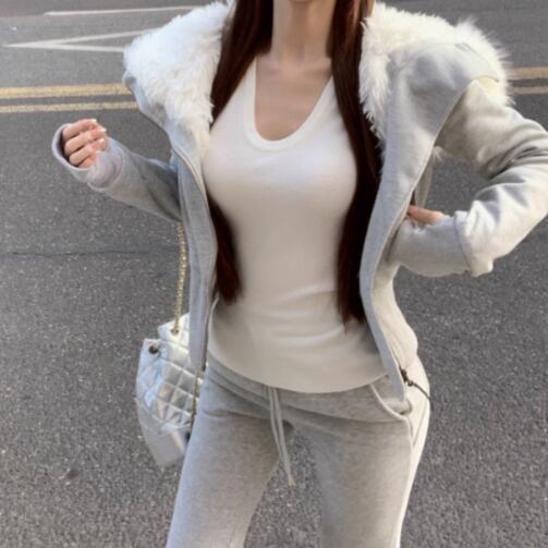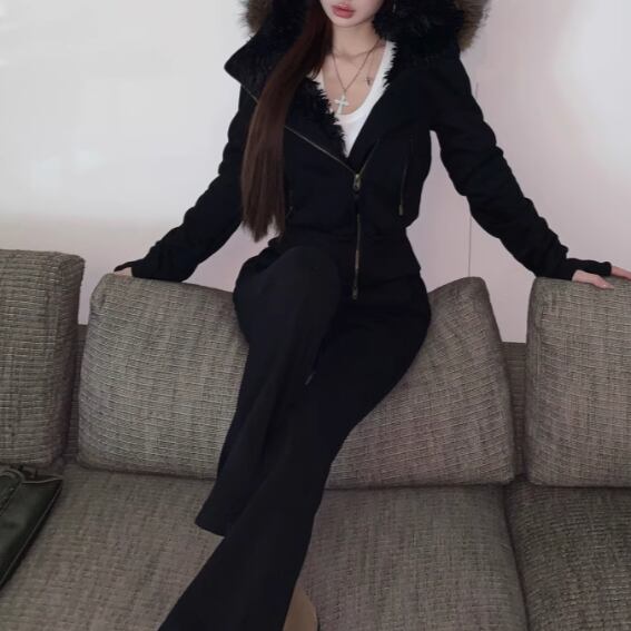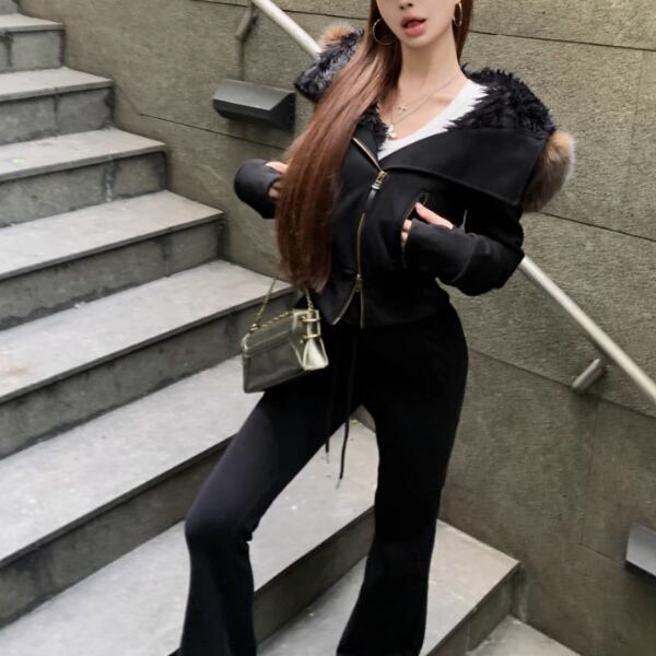【2点セット】3色/フーディーカシュクールトップス+マーメイドスカート ・12506