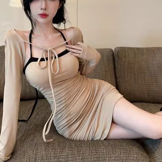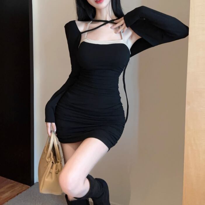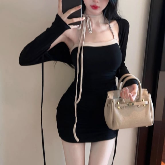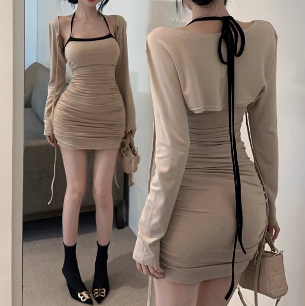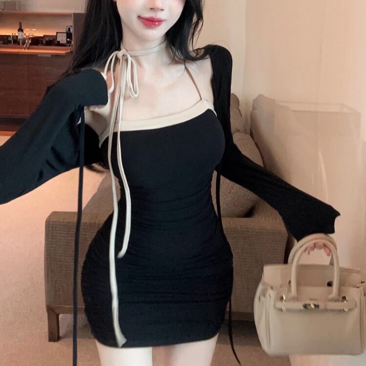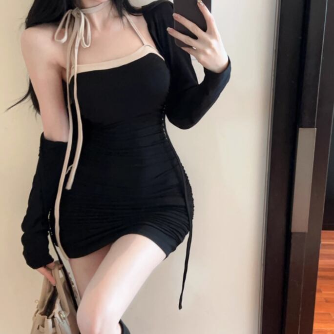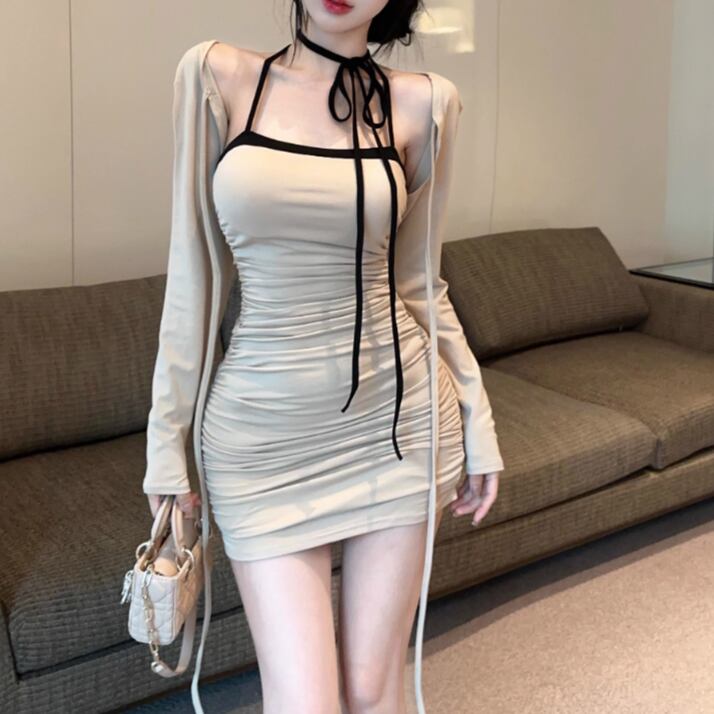 【2点セット】3色/フーディーカシュクールトップス+マーメイドスカート ・12506