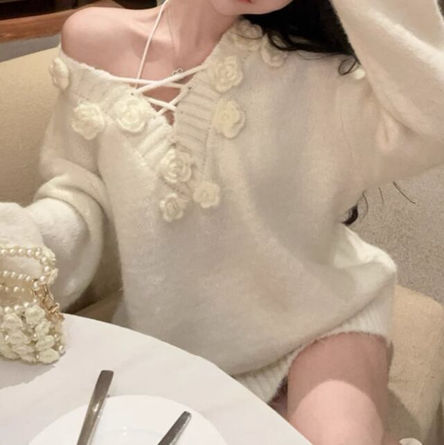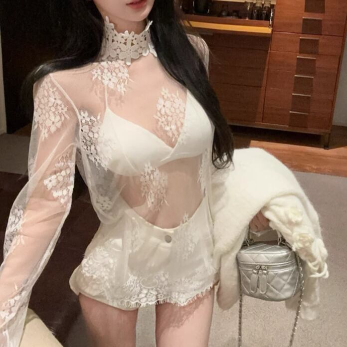 【3点セット】レースブラレット+オフショルトップス+レースヘムスカート ・12766