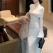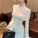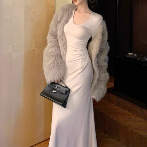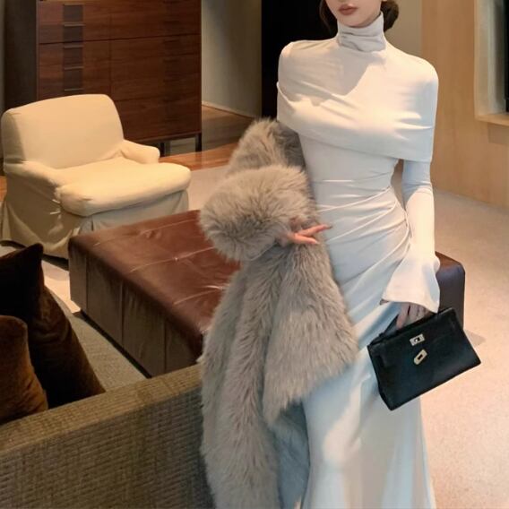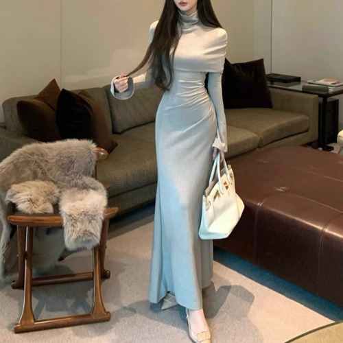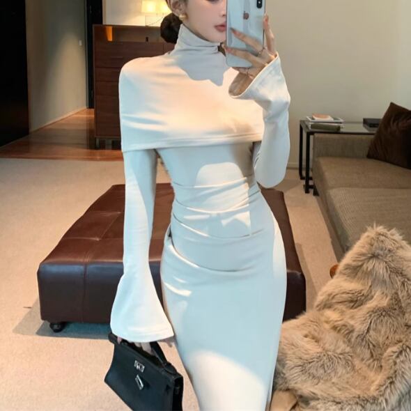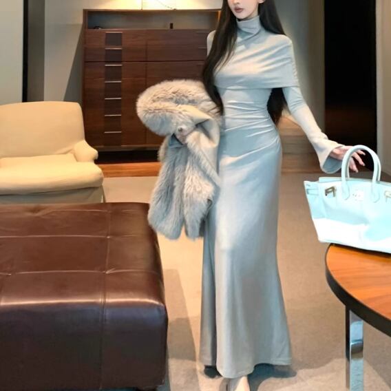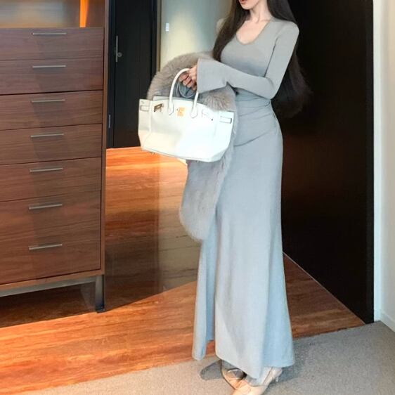 【2点セット】3色/フーディーカシュクールトップス+マーメイドスカート ・12506