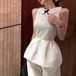 【2点セット】3色/フーディーカシュクールトップス+マーメイドスカート ・12506